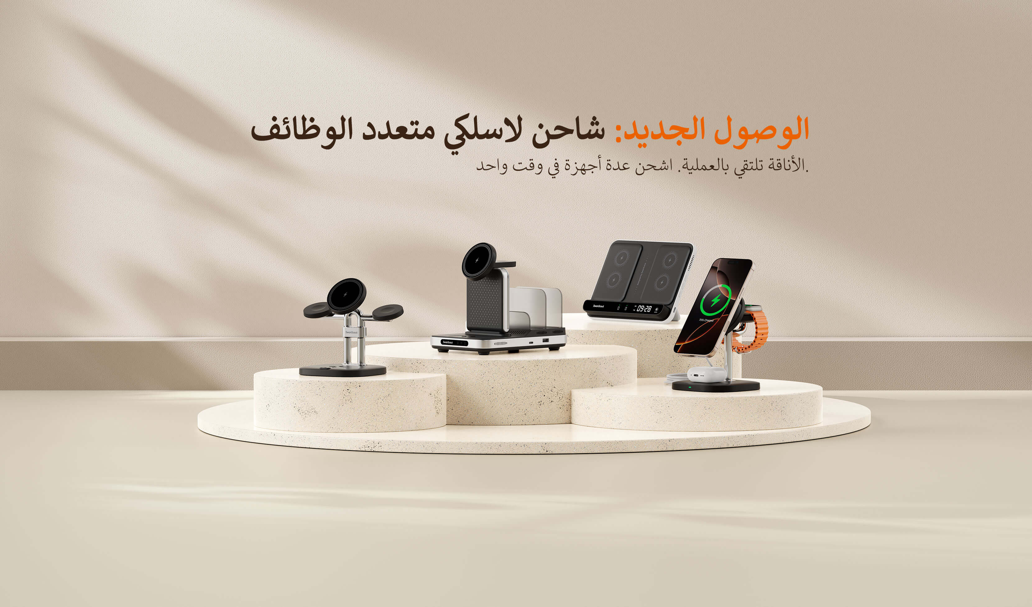 "هذا مصنوع جيدًا ويوفر القدرة على شحن الهاتف وسماعات الأذن والمشاهدة في نفس الوقت. وظيفة الساعة تجعله مثاليًا للطاولة الجانبية للسرير - اشحن كل شيء طوال الليل، وجاهز للاستخدام اليومي."