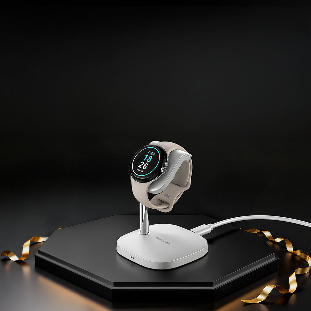 SwanScout 703G2 - 3 в 1 безжично зарядно за Pixel Watch 2/3 с часовник