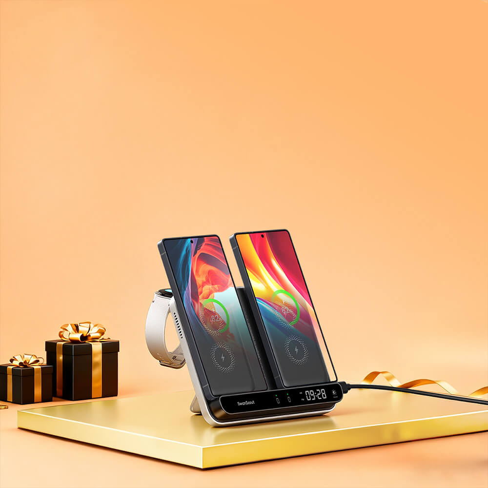 SwanScout 710S - Безжично зарядно за два телефона и един часовник за Samsung