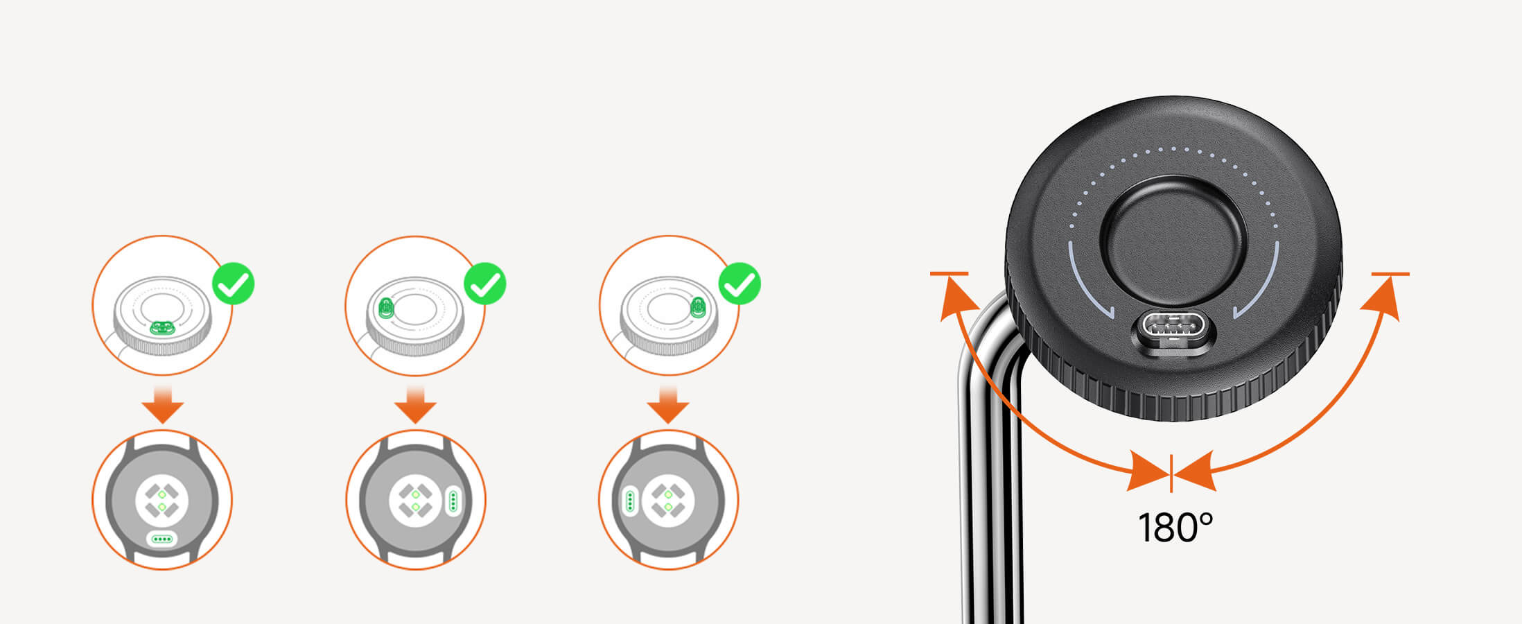 • Просто завъртете зарядното на 90° наляво или надясно за удобно подравняване на порта.