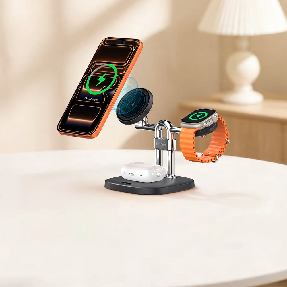 SwanScout 901M - 5 in 1 Wireless Charger for Apple, Perfect for Study Desks