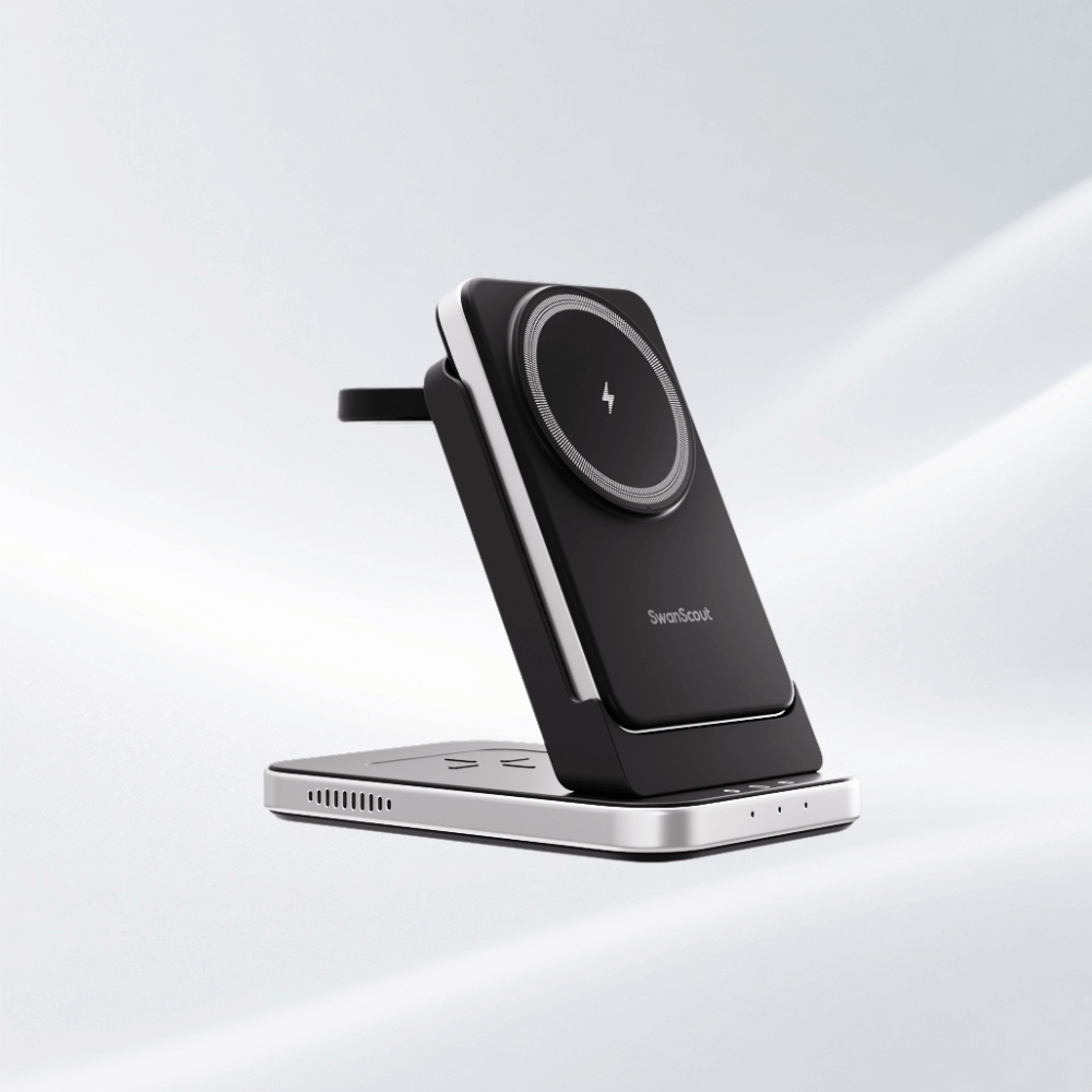 SwanScout 304M is a sleek iPhone charging station that simplifies power management for daily Apple device users.With iPhone wireless charger fast charging, the SwanScout 304M delivers quick, reliable energy without overheating.