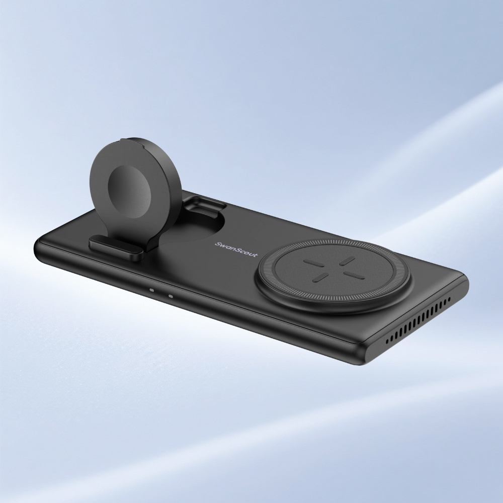 SwanScout 301M is a 3-in-1 foldable magnetic power bank, designed for seamless charging with MagSafe-compatible devices.The SwanScout 301M is an innovative apple watch power bank, offering wireless charging for your watch, phone, and earbuds.