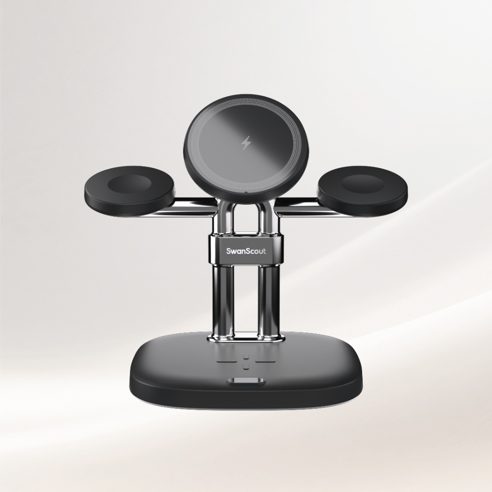 Kestävällä metallijalustalla varustetut SwanScout-laturit pitävät kellosi ja muut laitteesi tukevasti sekä pysty- että vaaka-asennossa varmistaen vakauden liukumatta. Huolellisesti suunniteltu jalusta parantaa käytettävyyttä ja estää tehokkaasti vahingossa tapahtuvat putoamiset ja vauriot, tarjoten huolettoman latauskokemuksen.