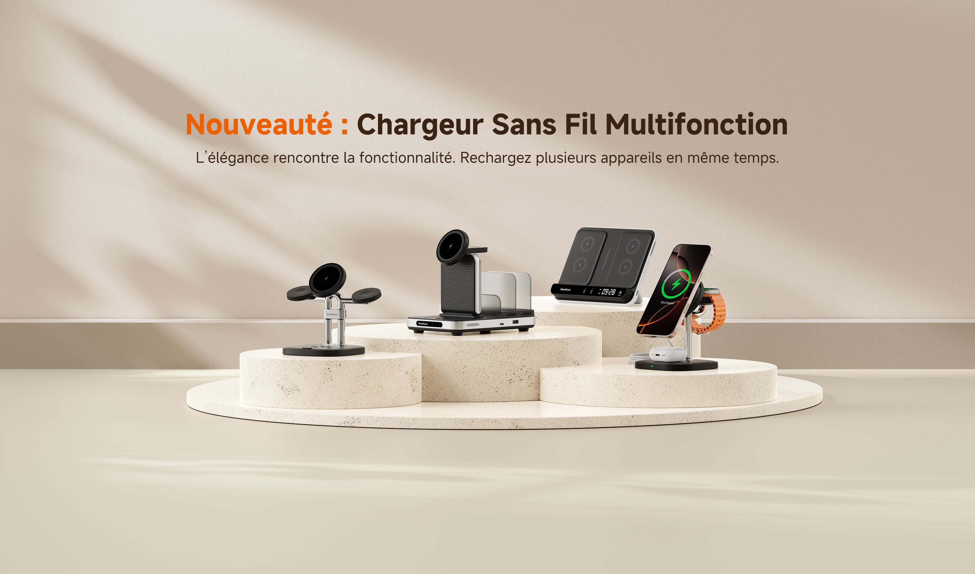 Economisez 20% The swanscout 708M combines elegance and speed with fast wireless charging for iPhone and Apple Watch.