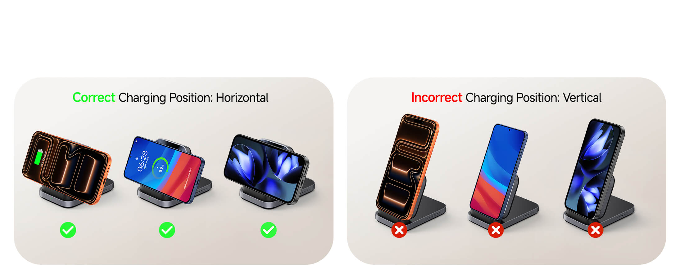 Compatible with wireless charging phones from Samsung, Google, and Apple.