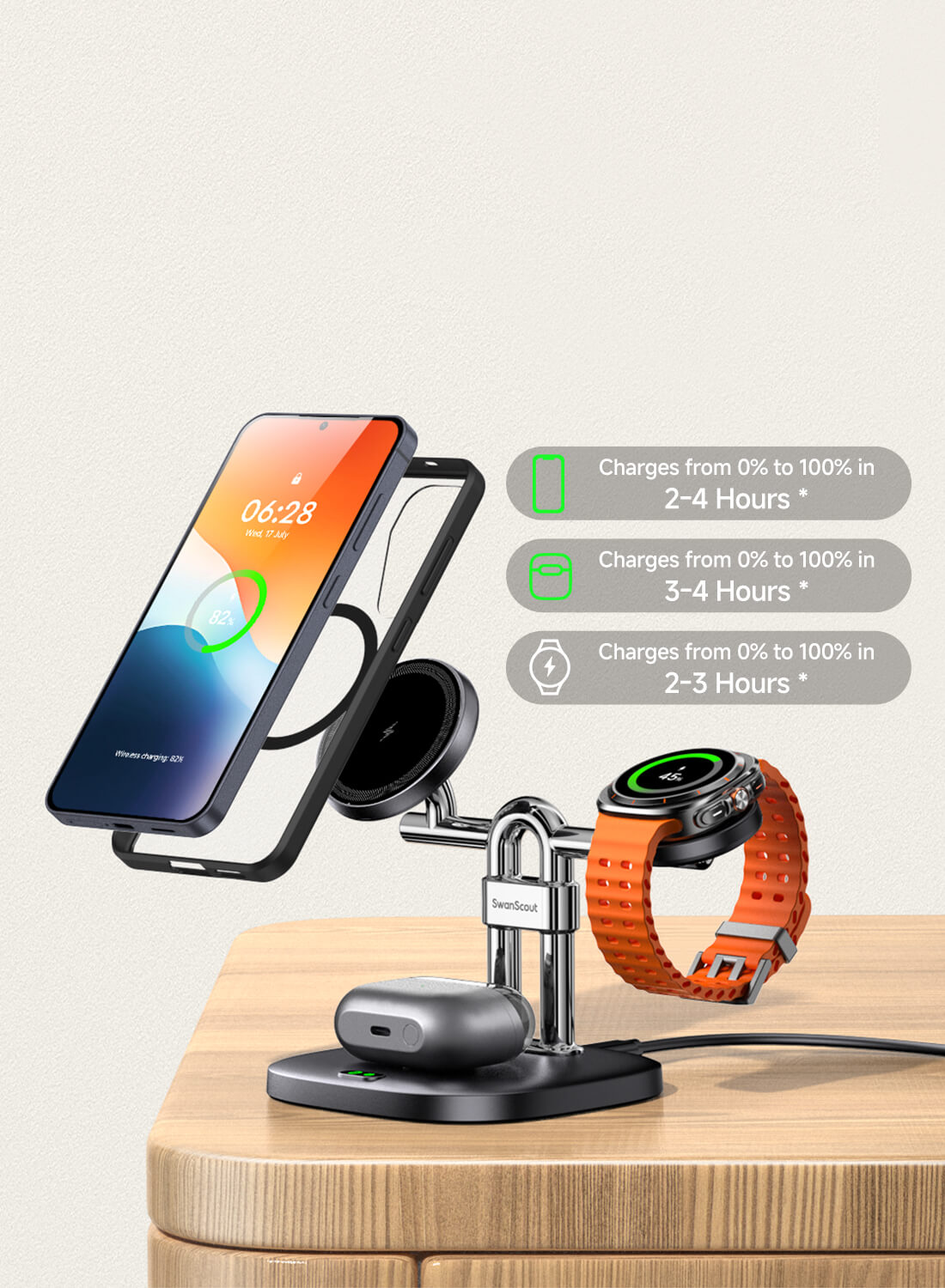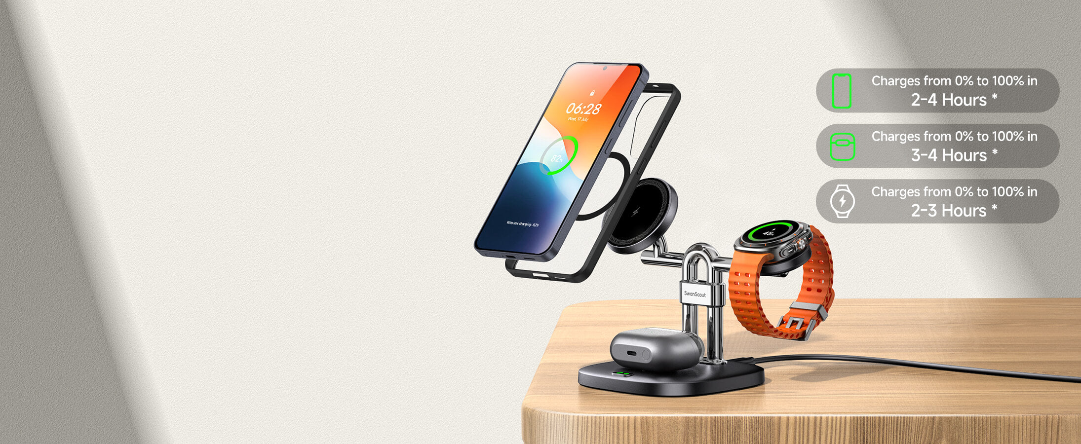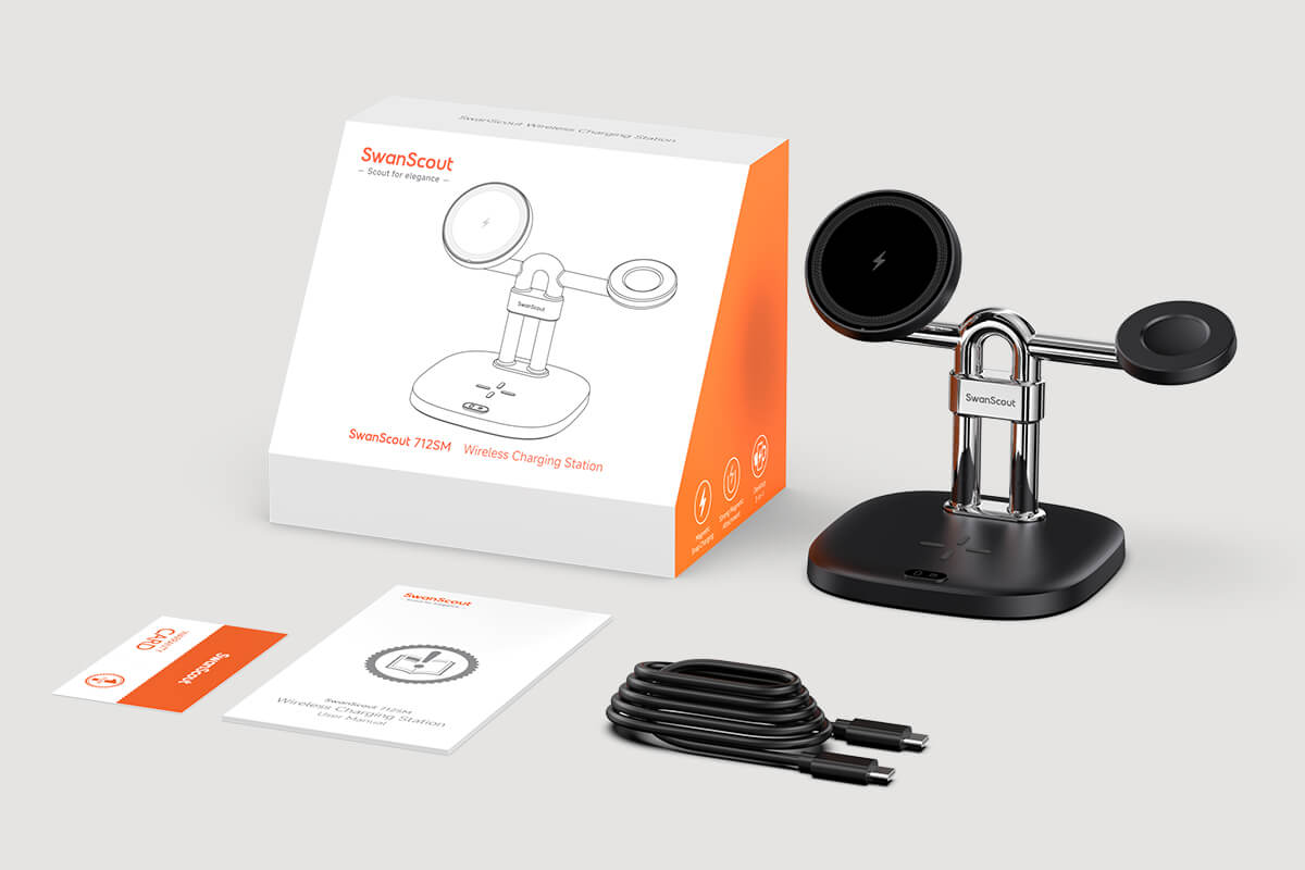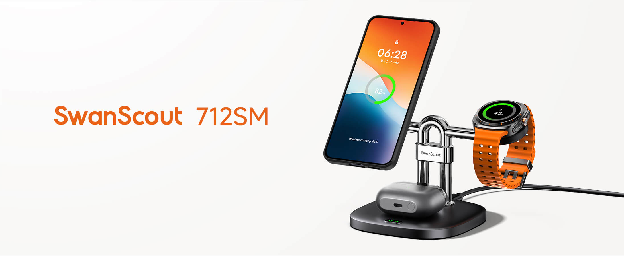 SwanScout 712SM – Samsung向け 3 in 1 マグネット式ワイヤレス充電ステーション