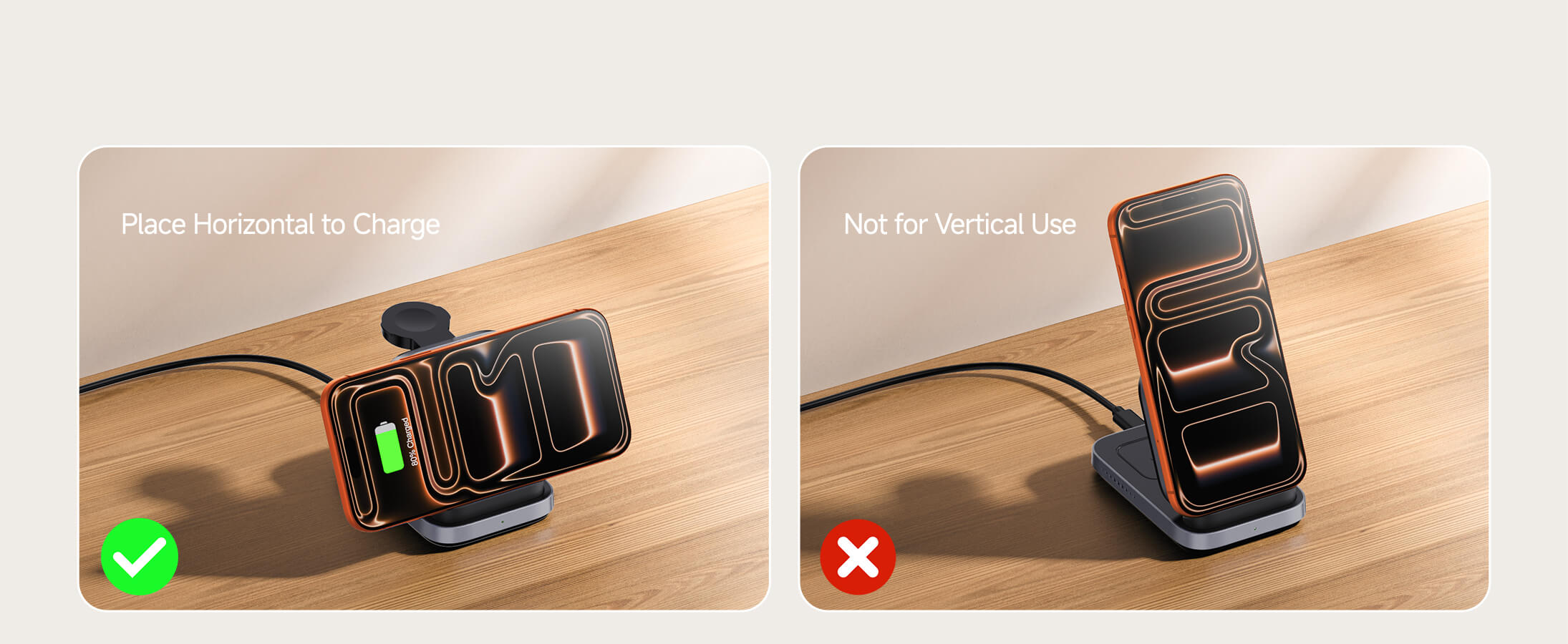 • Horizontal Phone Charging: Charge your phone in landscape mode for comfortable video viewing or browsing while charging.