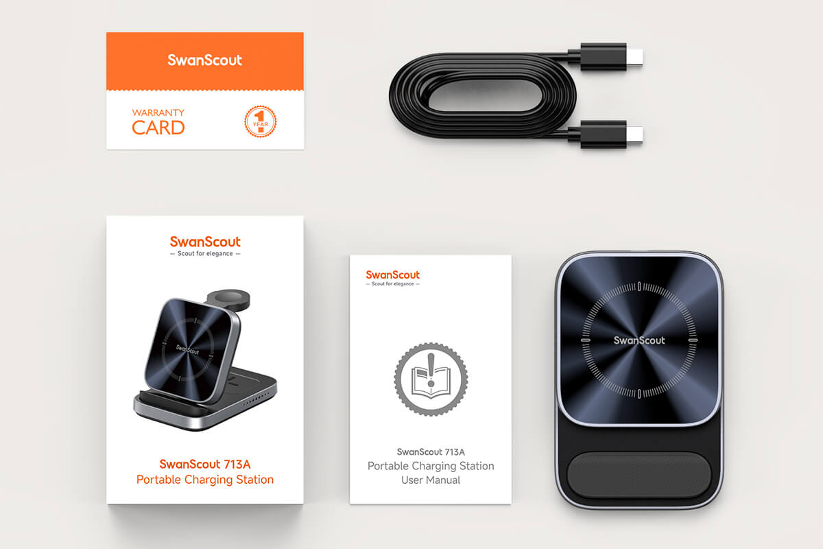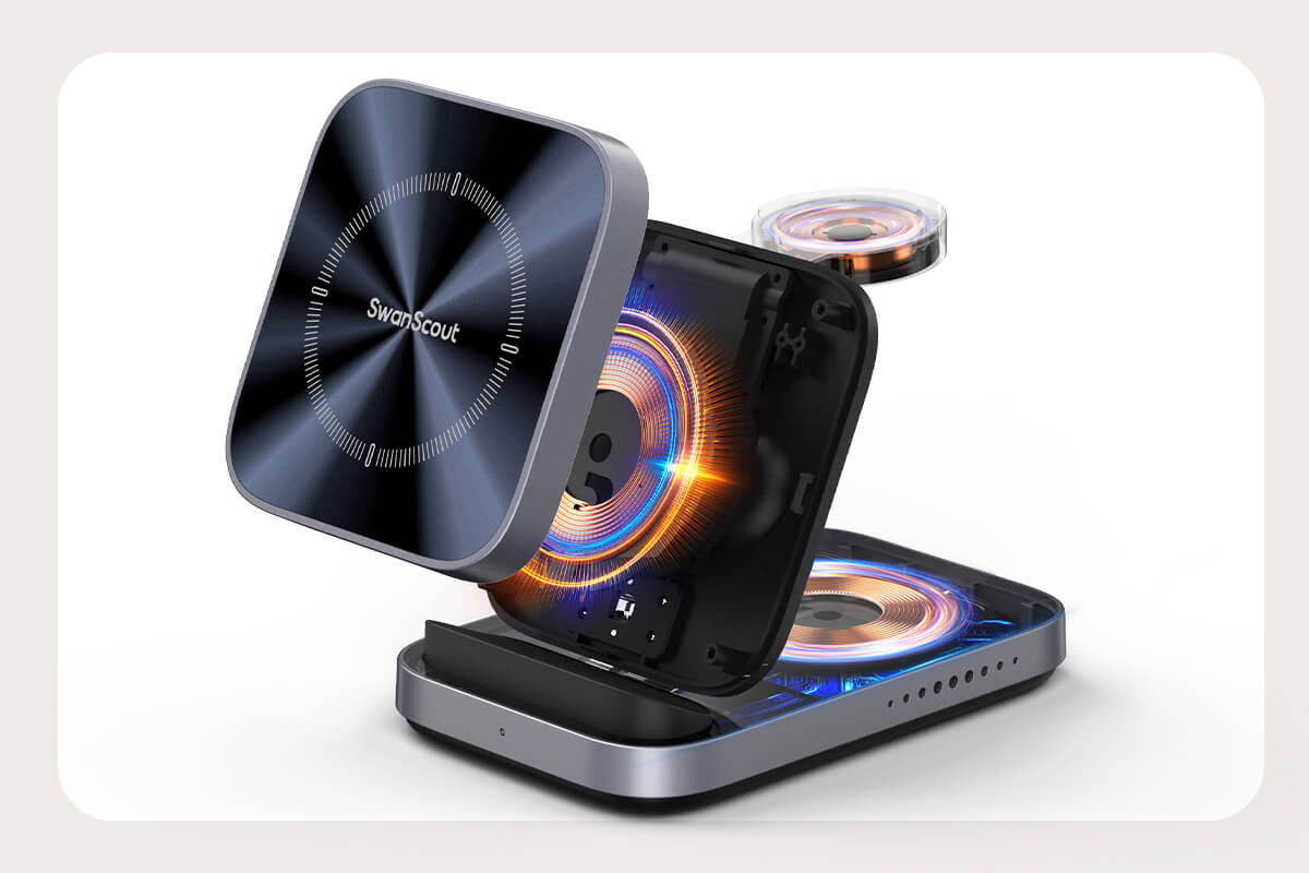 SwanScout 713A - Foldable 3 in 1 Wireless Charger for Apple