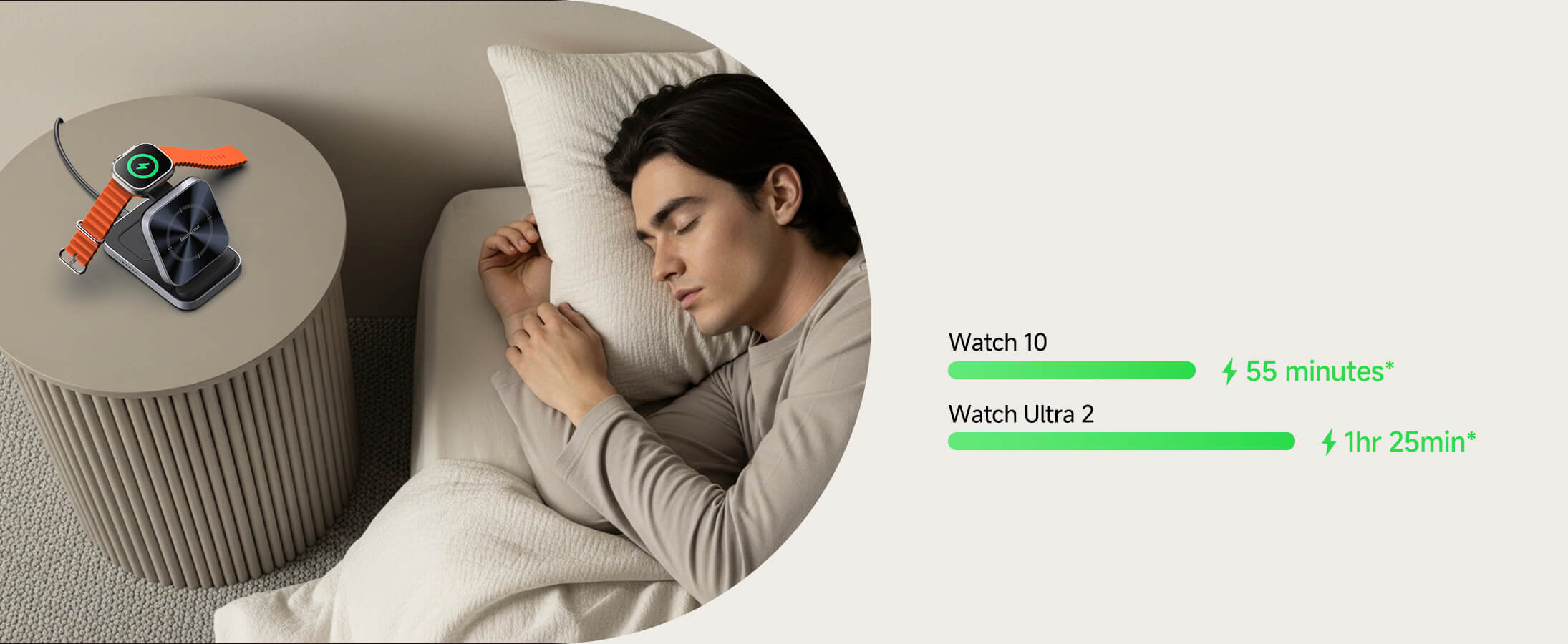 • Apple Watch Fast Charging: Delivers 5W fast charging for Apple Watch Series 7 and later—charge Apple Watch Series 10 from 0% to 80% in just 51 minutes.