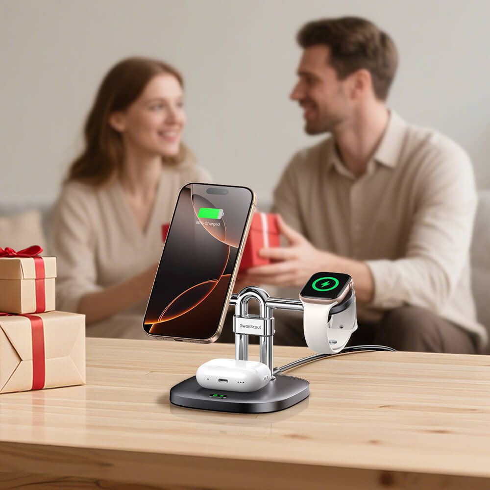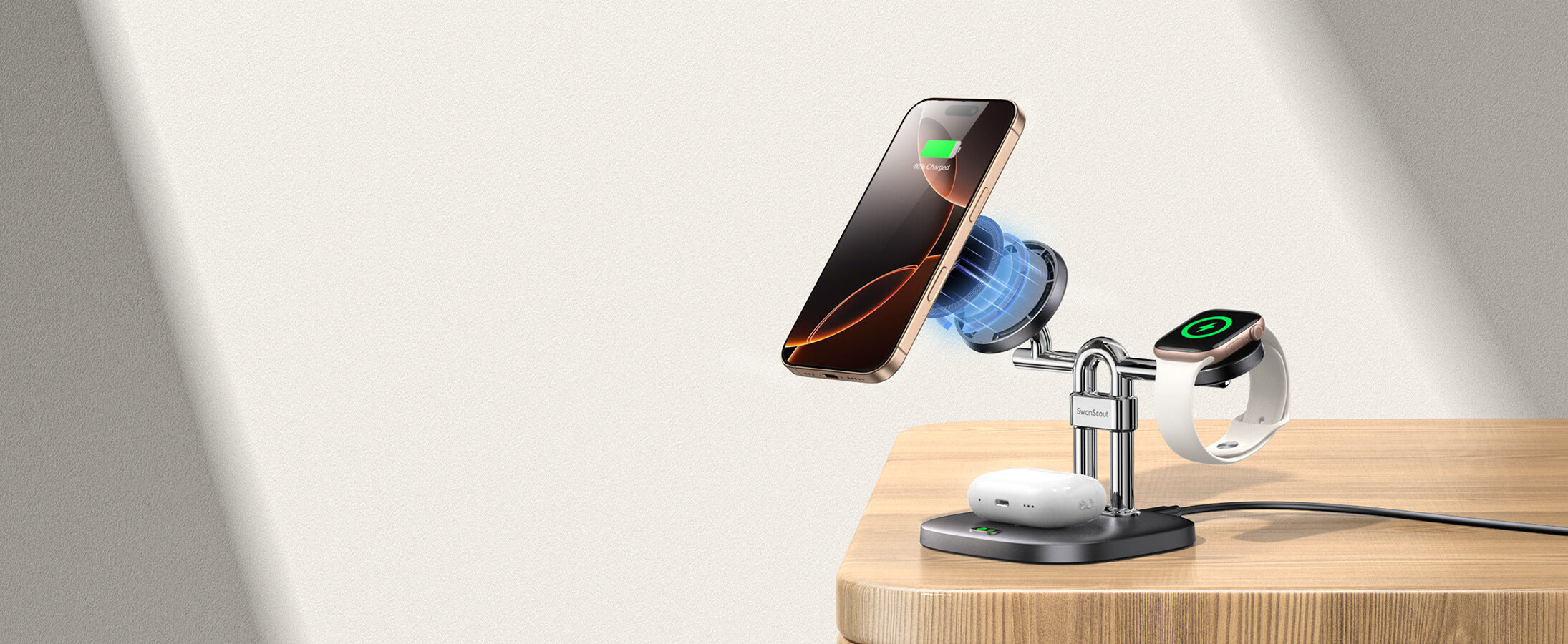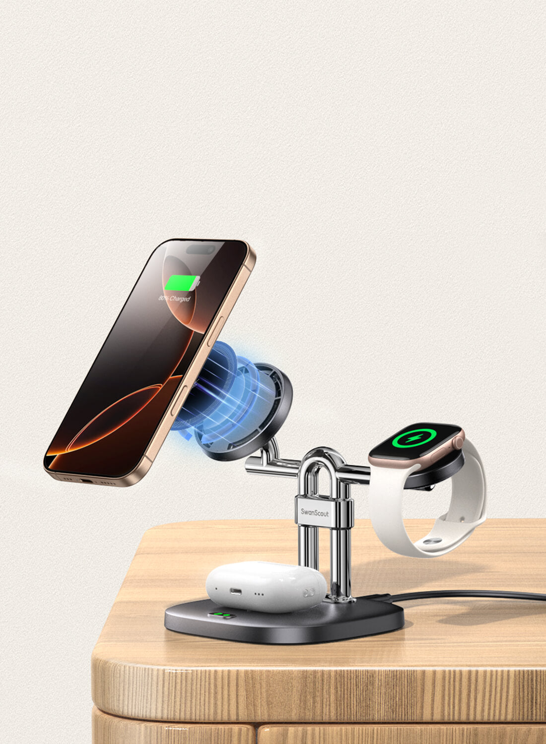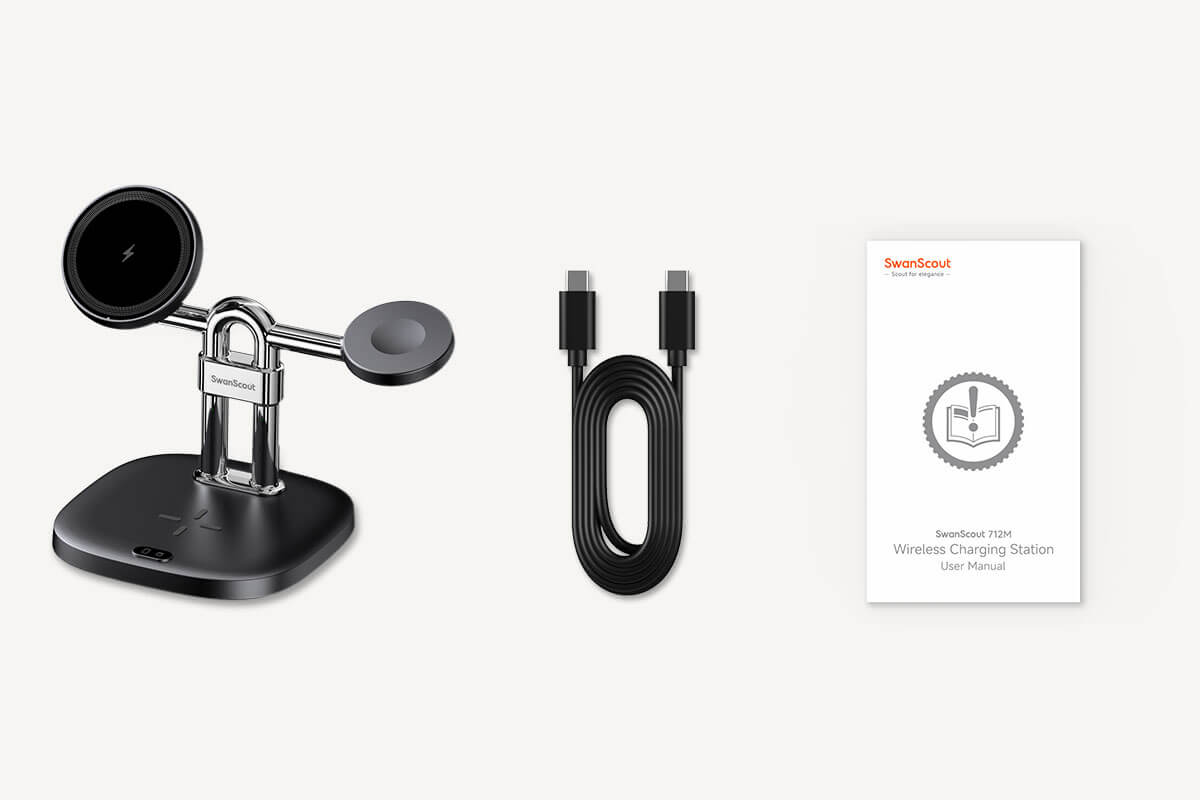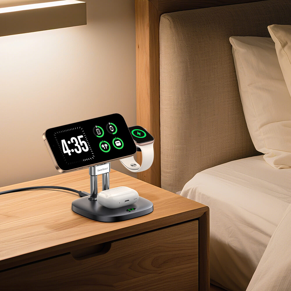 SwanScout 712M - Estação de Carregamento Sem Fios Magnética 3 em 1 para Apple