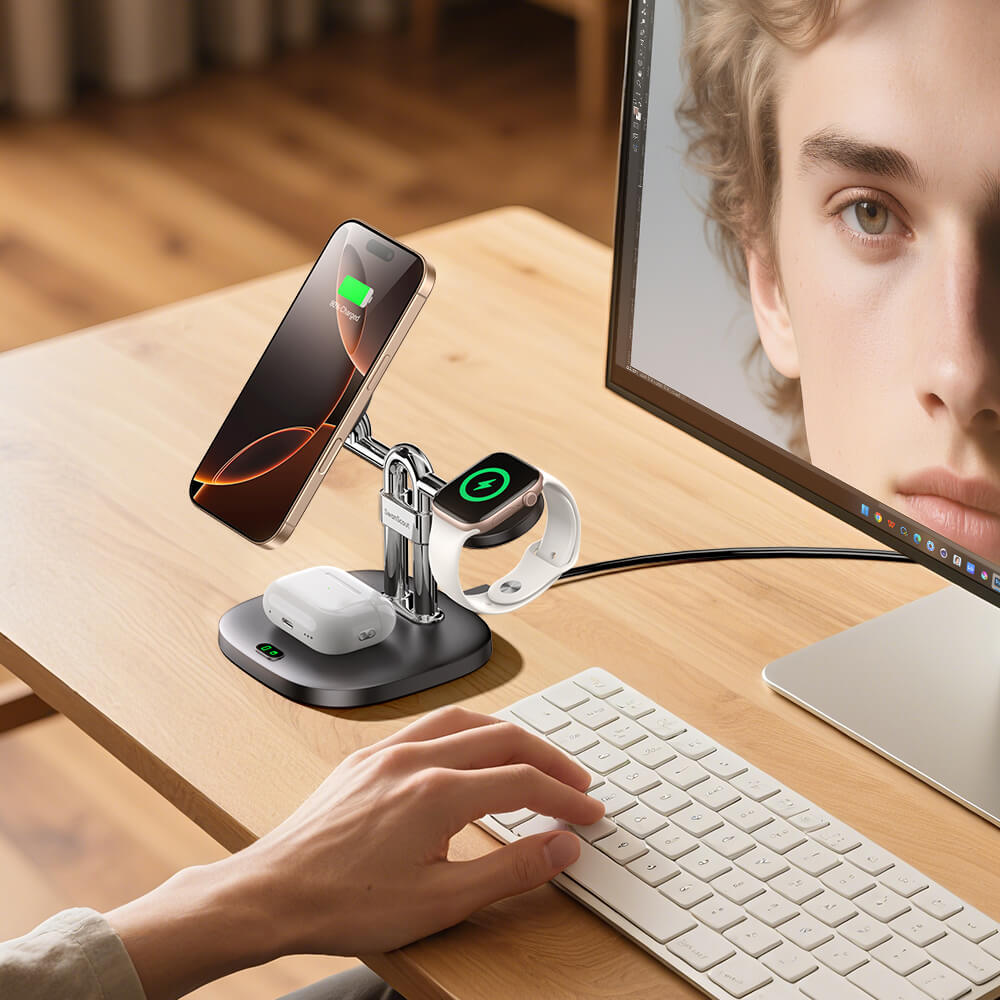 Adjustable charging angle and extended stand ensure optimal visibility of charging status.