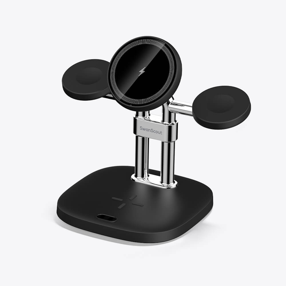 Echipate cu un suport metalic durabil, încărcătoarele SwanScout fixează ferm ceasul și alte dispozitive atât în poziție verticală, cât și orizontală, asigurând stabilitatea fără alunecare. Suportul proiectat cu grijă îmbunătățește utilizabilitatea, prevenind în același timp eficient căderile și deteriorarea accidentală, oferind o experiență de încărcare fără griji.