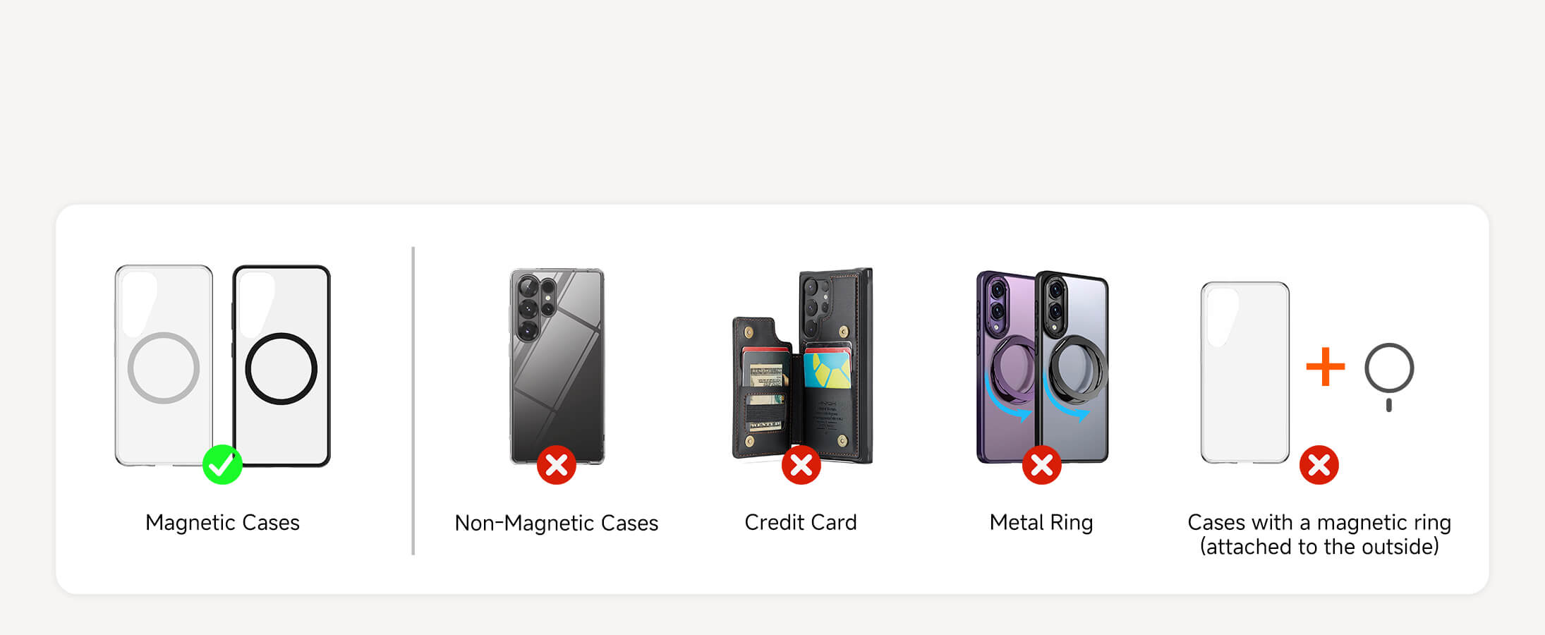 Inte kompatibel med Galaxy A/M/J/Tab-serien och andra telefoner utan trådlös laddning.