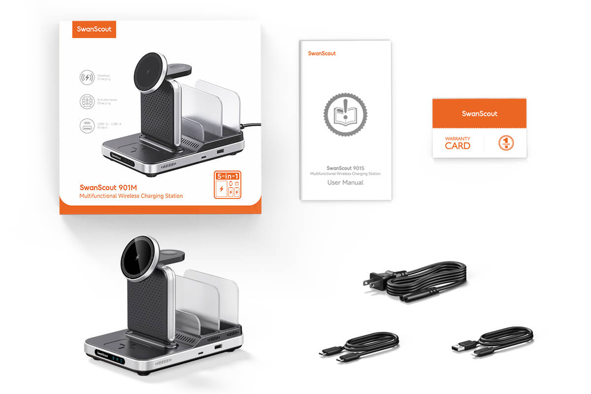SwanScout 901M - 5 合 1 Apple 无线充电器,适合学习桌使用